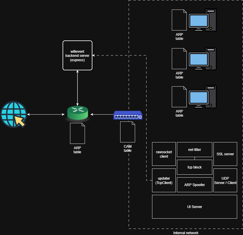 2021년도 네트워크 보안 및 사용자 인증 실험 프로젝트에서 ARP Spoofing을 이용해 사용자의 트래픽을 가로채고, 자체 SSL 서버를 기반으로 Captive Portal을 제공하는 시스템을 직접 구축했다. 이 글에서는 해당 시스템이 동작하는 전체 흐름과 구현 과정에서 마주친 문제, 그리고 이를 해결한 방식에 대해 기록한다. 꽤나 오랜 시간이 흘렀지만, 최근 블록체인 업계로의 취업이 결정되어 남는 시간을 낭비하기 싫어 이렇게 이전에 했던 일들을 기록하며 시간을 보내려 한다.