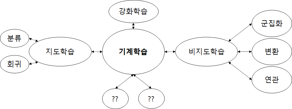 | 비지도학습 | 무언가를 보고 통찰력을 통해 새로운 의미나 관계를 밝히는 것 |